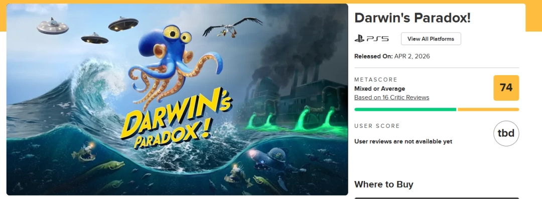冒险游戏《达尔文悖论》媒体评分解禁!M站均分74