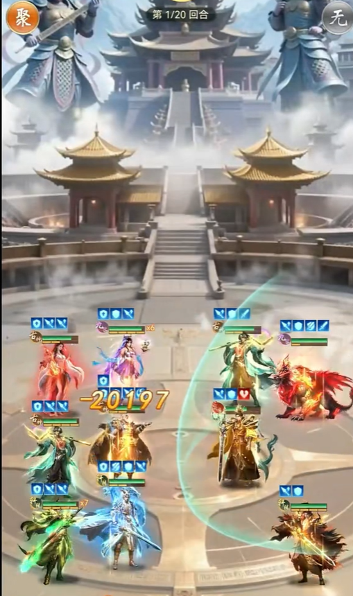 在阵容构筑层面,齐天大圣适配性强,支持多梯度配置。低配过渡阶段推荐采用「齐天大圣+后羿+嫦娥+黄帝+九尾+旱魃」六人组合,该阵容在异兽普遍处于低星级时仍能维持稳定输出与功能性平衡;待黄帝突破至九星、解锁专属追击机制后,可升级为高配追击体系——以「九星黄帝+齐天大圣」为双追击引擎,搭配嫦娥(治疗/减伤)、青龙(前排承伤/控制)、炎帝(持续灼烧)、伏羲(全队增益/能量回复),形成攻守兼备、续航充足、节奏流畅的成熟追击流阵容。