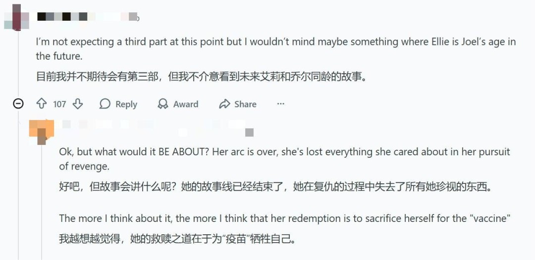 在Reddit等玩家社区,关于《最后的生还者3》必要性的讨论迅速发酵。有玩家发帖称:“我知道大家都在传《最后的生还者3》的消息,每个人都很兴奋,但有没有人觉得故事其实已经完成了?”