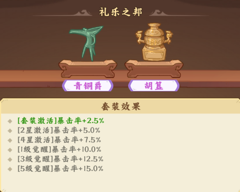 提供暴击率加成,首次激活/2星/4星/1级觉醒/3级觉醒/5级觉醒:2.5%/5.0%/7.5%/10%/12.5%/15.0%暴击率。