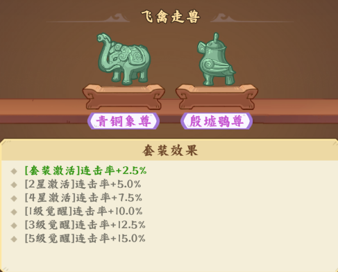 提供连击率加成,首次激活/2星/4星/1级觉醒/3级觉醒/5级觉醒:2.5%/5.0%/7.5%/10%/12.5%/15.0%连击率。
