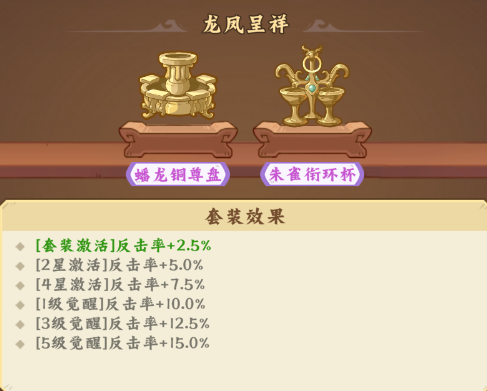 提供反击率加成,首次激活/2星/4星/1级觉醒/3级觉醒/5级觉醒:2.5%/5.0%/7.5%/10%/12.5%/15.0%反击率。