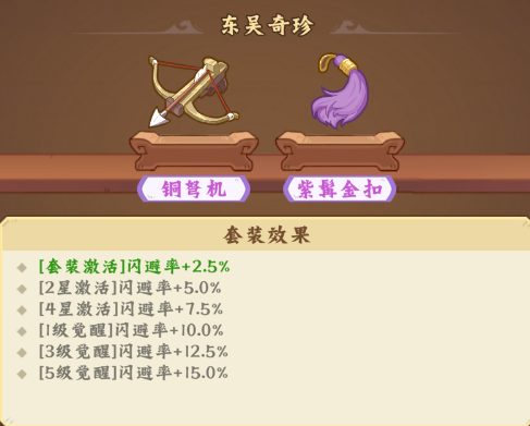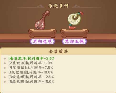提供闪避率加成,首次激活/2星/4星/1级觉醒/3级觉醒/5级觉醒:2.5%/5.0%/7.5%/10%/12.5%/15.0%闪避率。
