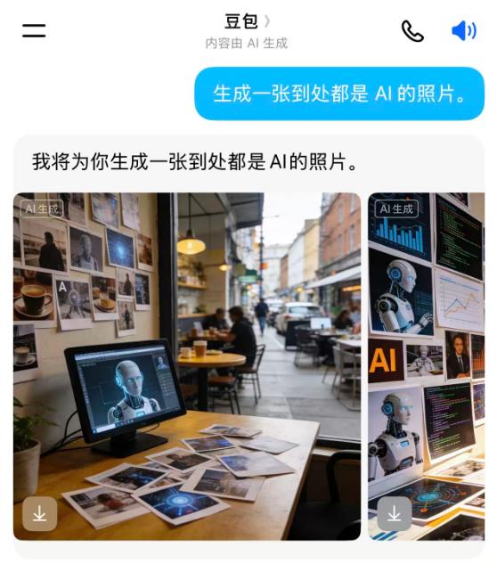 如果在写作或者发朋友圈没有配图,可以直接给豆包说。拍的照片也可以上传给豆包,让他帮忙P图。当然描述要尽量具体,比如”赛博朋克风格的东京夜景,雨天霓虹反光,超现实主义,8K质感“,或者说“保留主体,把后面的人全P掉”。一次可以生成多张图,免费额度日常也够用。