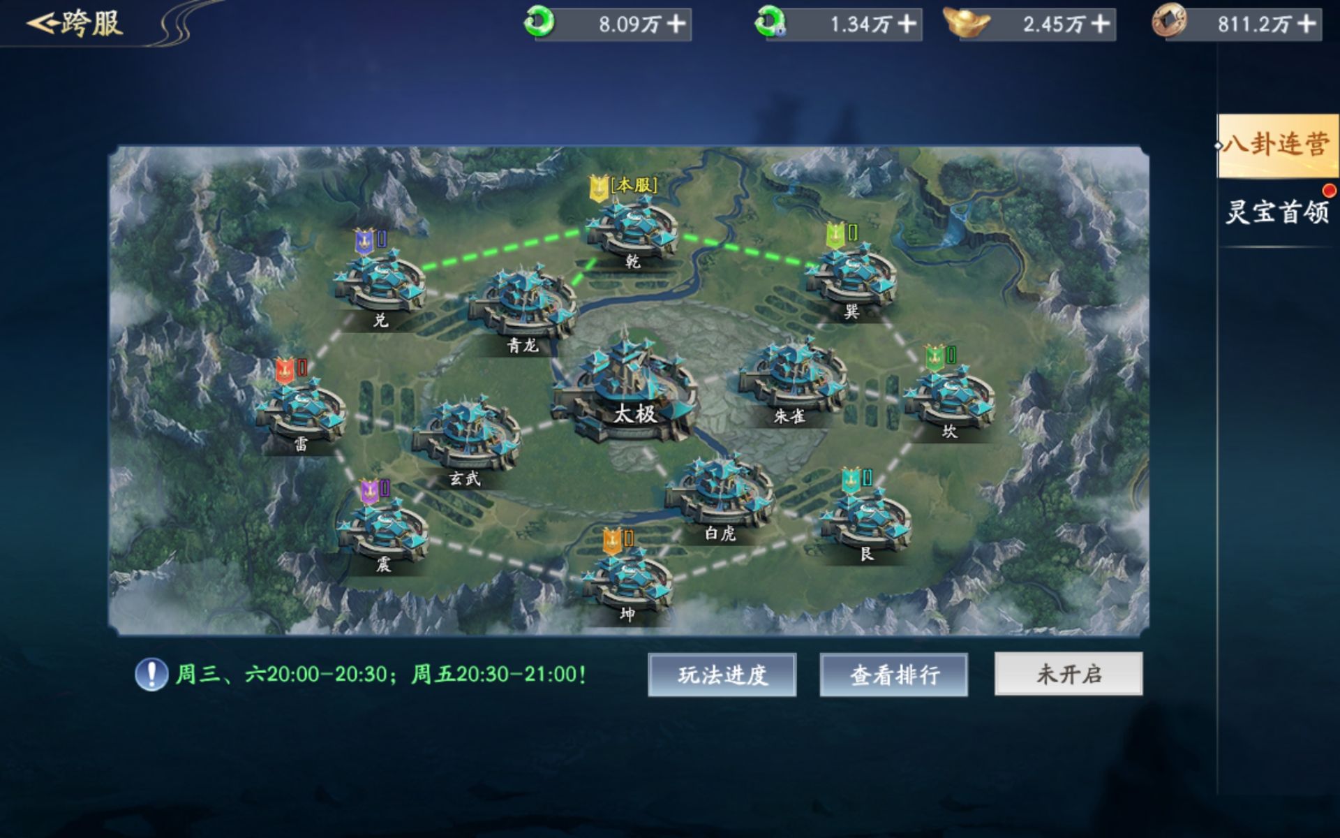 3.赛季:跨4服阶段时从玩法开启到进入8服跨服阶段为一个赛季;跨8服阶段时每月1日、16日分别开启新赛季,同时结算上一赛李的奖励。