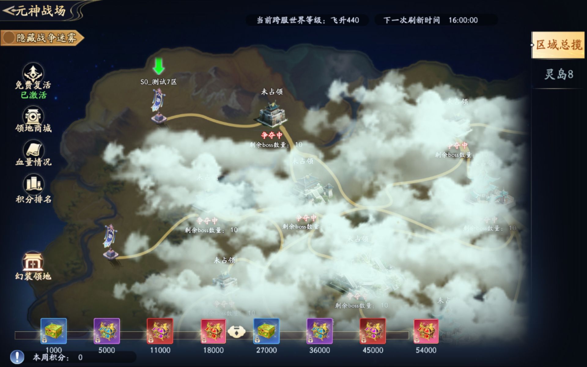 2.每日0:30.12:30.16:00.21:30根据每个区域当前的血量情况各服务器占领积分决定占领权,积分最高的服务器获得占领奖励,并获得该区域到下个时段的占领权