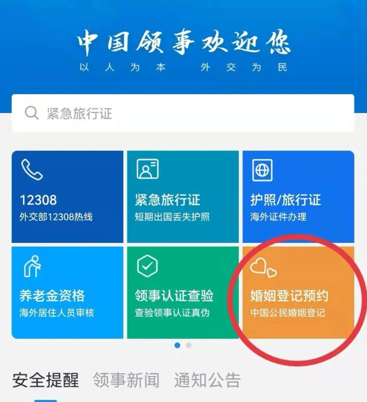 “中国领事”APP即将启用补领婚姻登记证件预约功能
