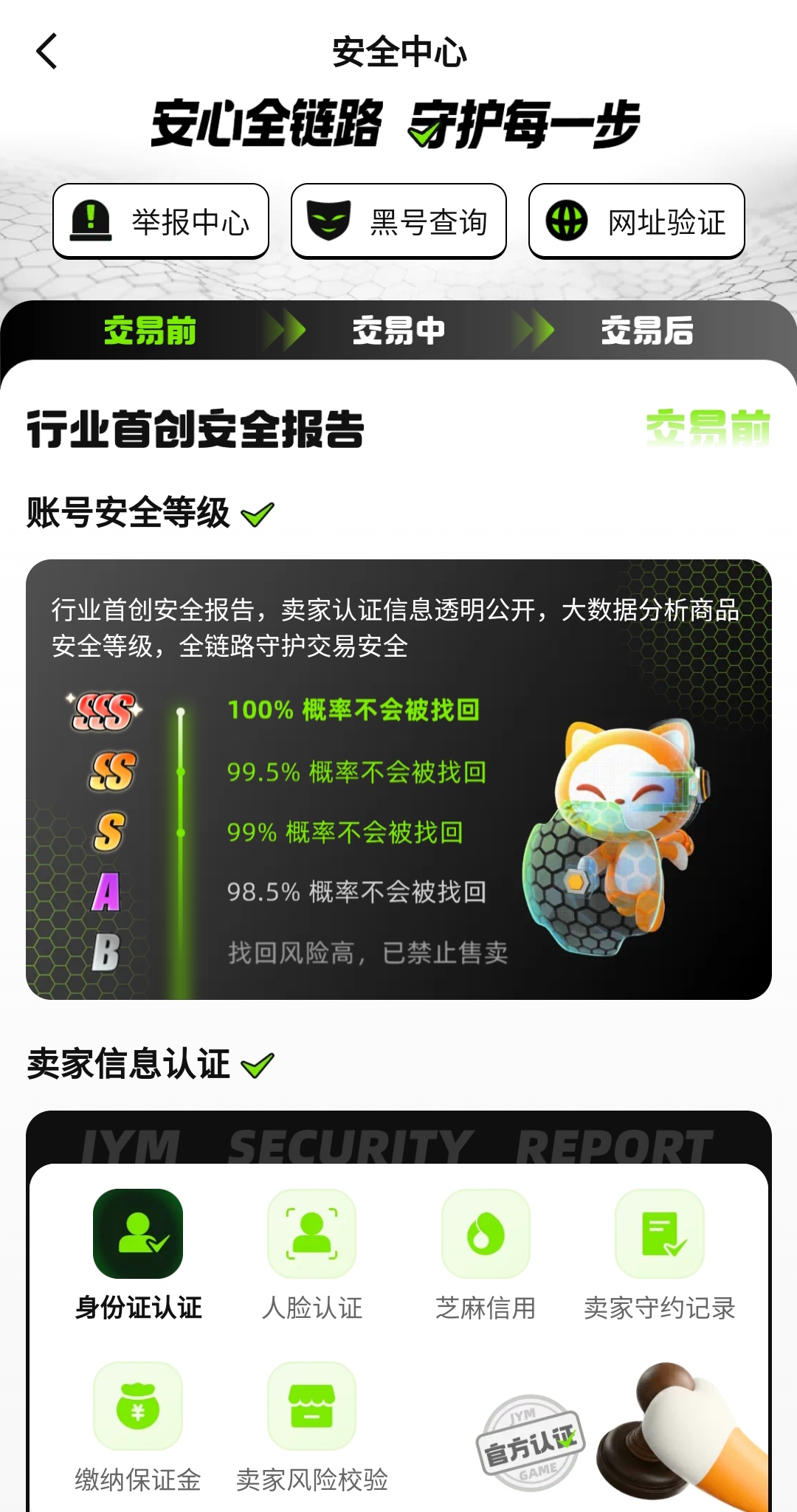 自上线以来,交易猫累计服务用户突破7000万+,不仅在售后响应速度与赔付效率上表现突出,在售前风控环节同样投入巨大。平台早在多年前即推出“安心购”保障计划,从源头拦截黑号、冻结异常账号,大幅压缩高风险账号流入市场的空间。后续持续围绕买家核心关切点进行功能迭代,例如优化验号流程、强化信息核验颗粒度、提升客服响应时效等,真正实现“账号成交即兜底”的服务承诺。安卓用户可点击上方按钮直接下载安装;苹果用户可通过浏览器访问交易猫官网完成下载与使用。
