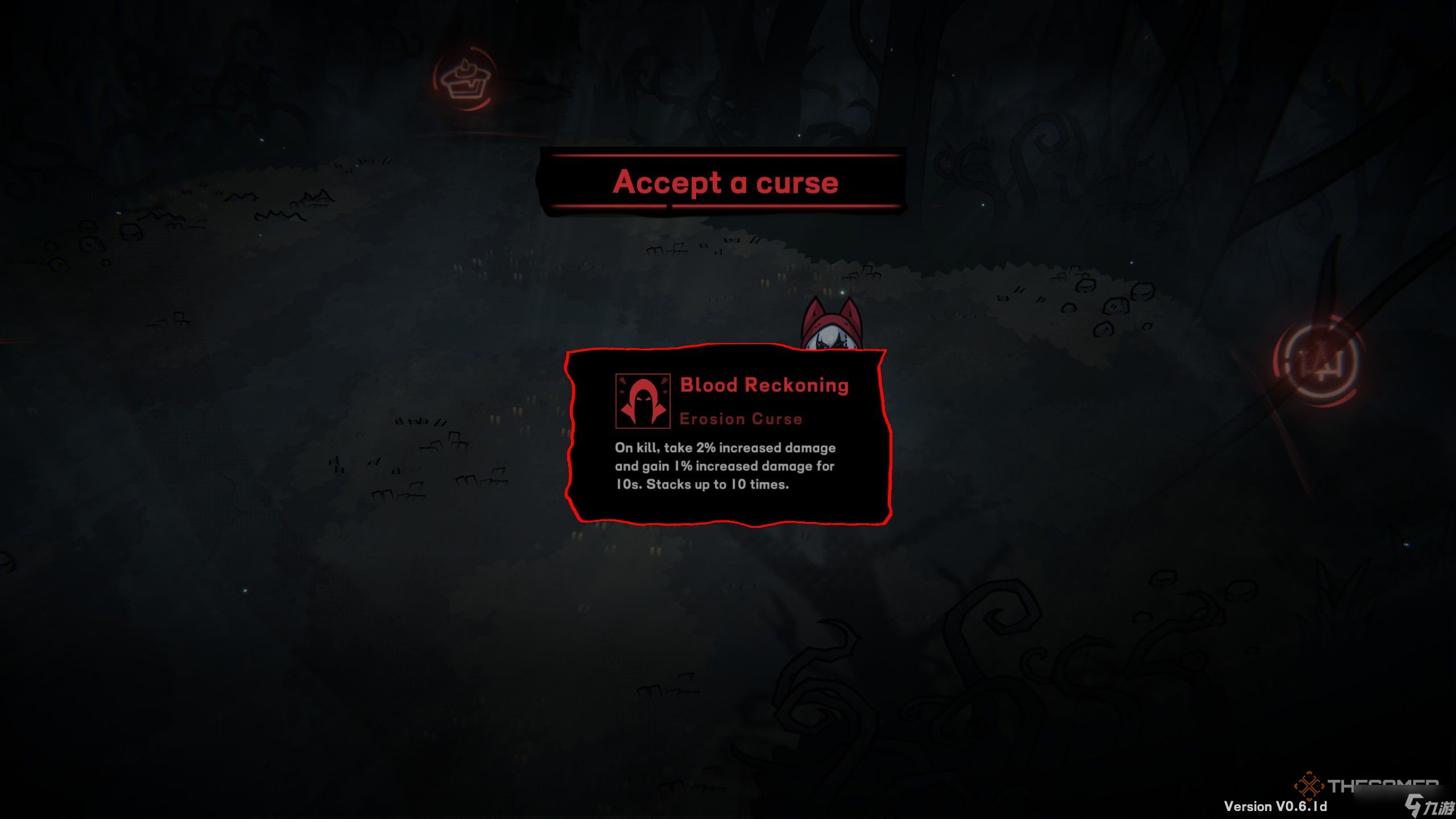 侵蚀值达到100后,你会被施加一个随机的诅咒,该诅咒将在本次游戏的剩余时间内持续。这些诅咒完全是负面的,例如受到攻击后变弱、生命值越低受到伤害越高等等。