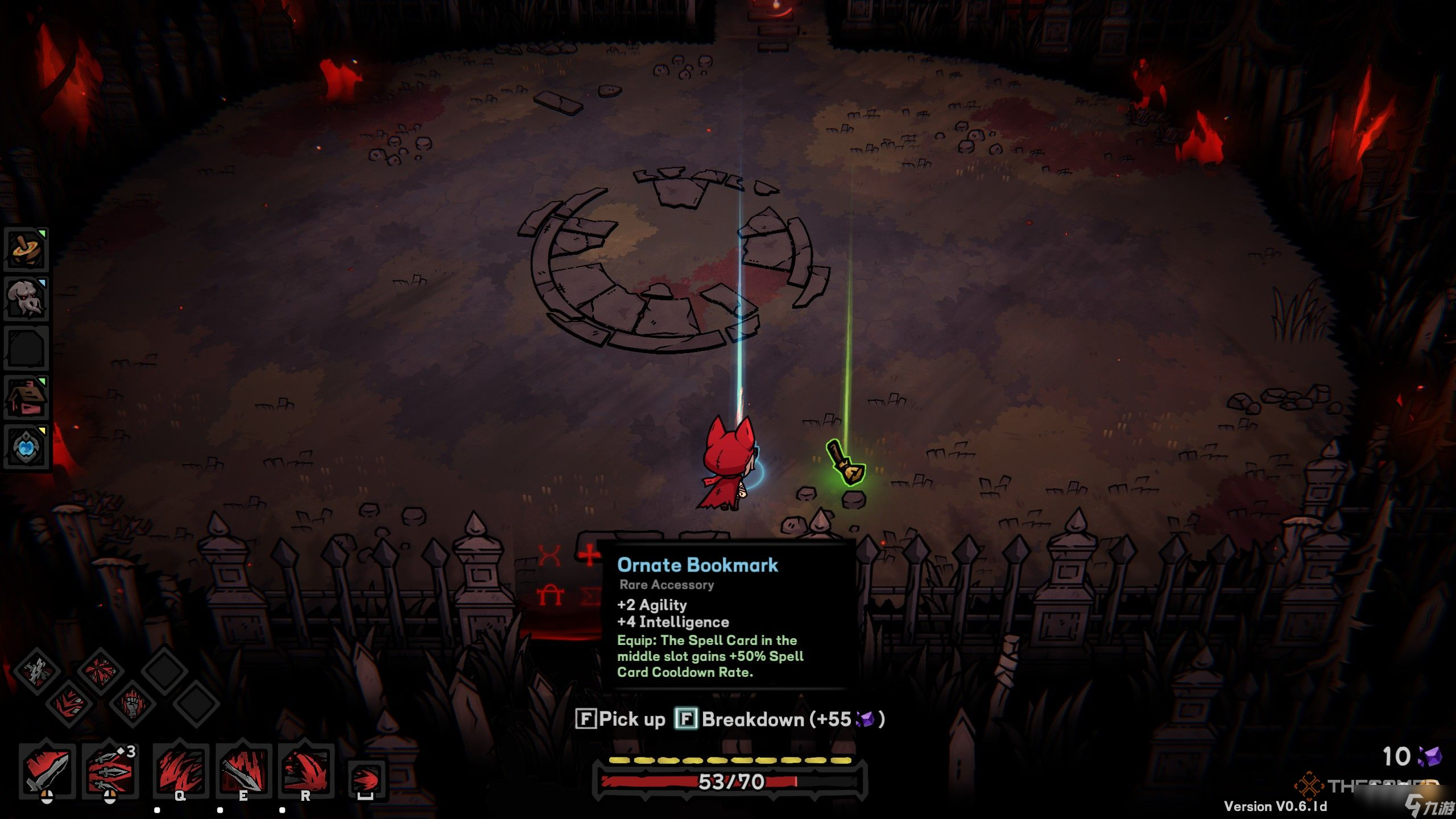 一些饰品除了属性提升外,还带有额外效果。例如,“华丽书签”会减少位于中间技能槽的技能的冷却时间。这样一来,你的技能绑定在哪个按键上就变成了一个战术决策。