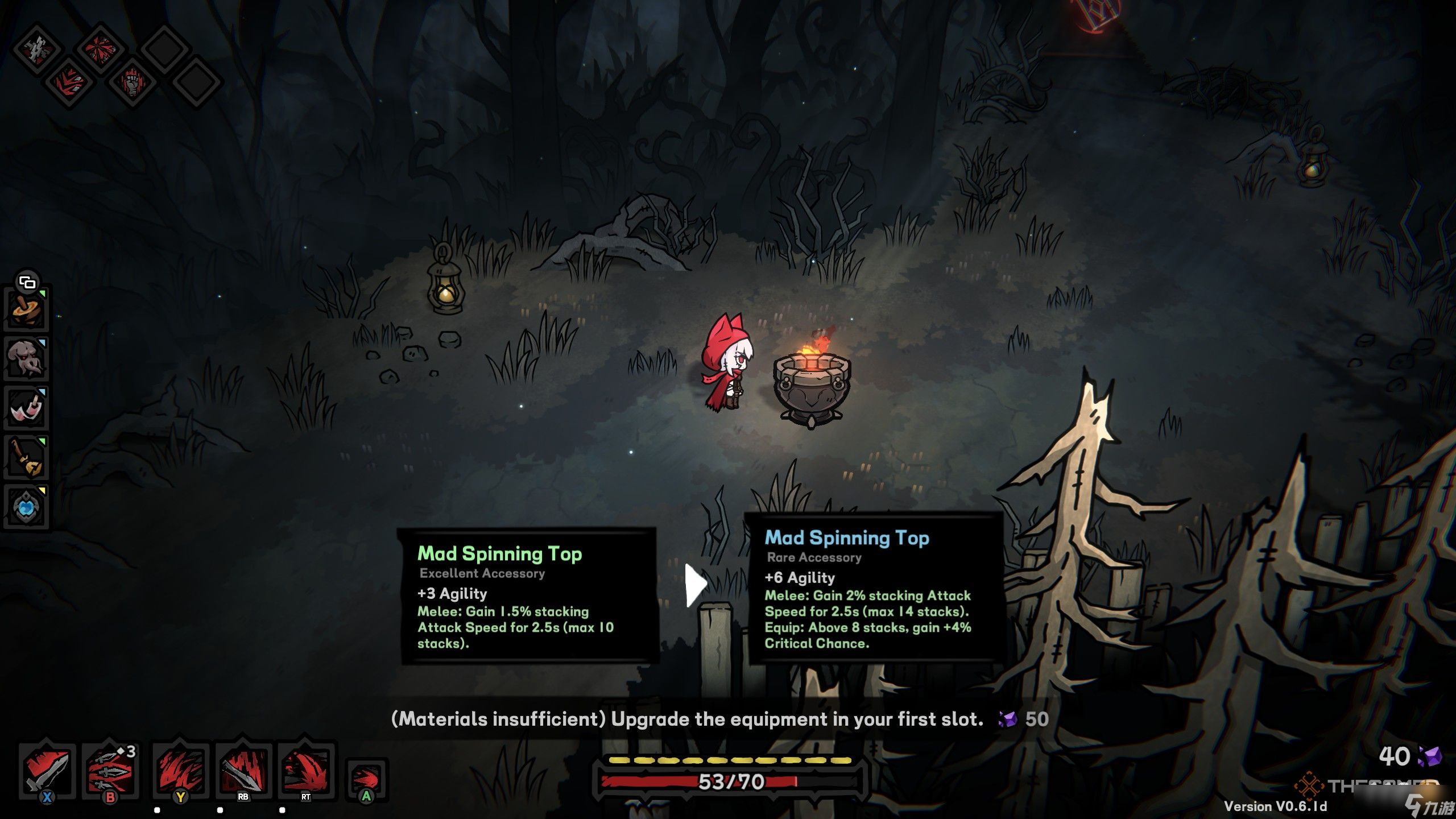 一些房间,特别是在进入新区域后遇到的房间,允许你升级单个饰品,这需要使用你拆解它们时获得的紫色装备水晶。时刻记住你身上有什么,这样你就不会错过更好的装备。