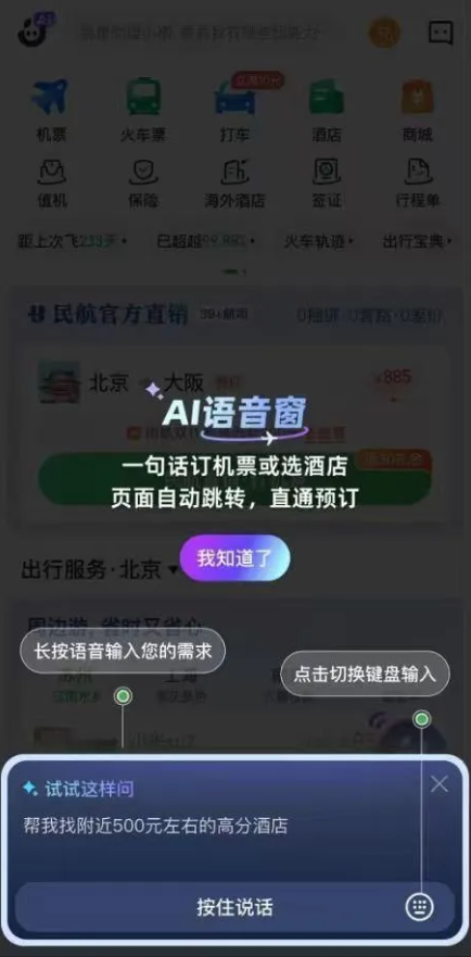 航旅纵横上线AI预订 “一句话”就能订机票酒店