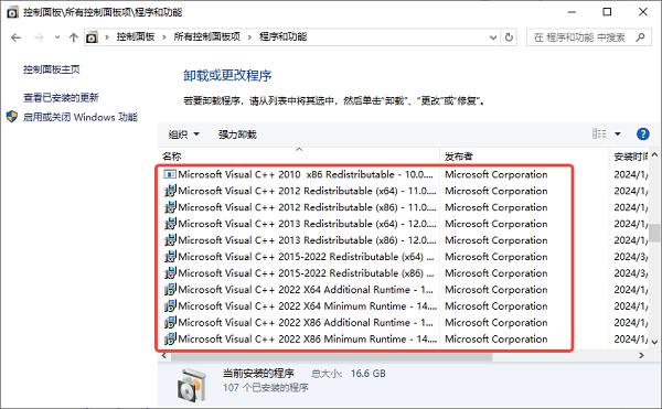 这种方法的好处是你可以清晰地看到每个运行库的安装日期。如果某个库的安装日期是你最近重装系统的那天,而之后报错了,说明这个库可能需要更新或重装。