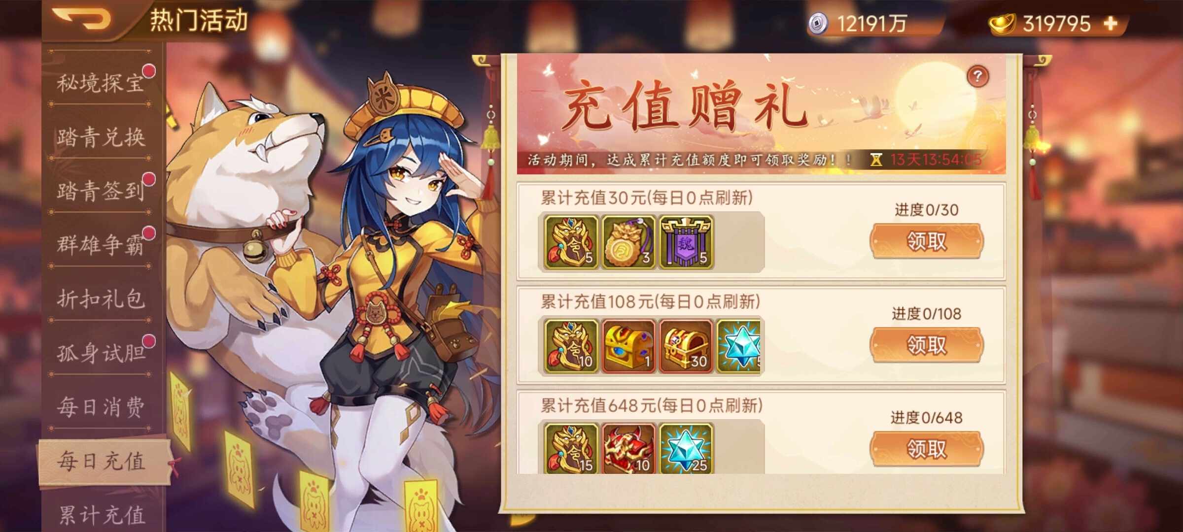 活动内容:活动期间,每日充值达成额度即可领取奖励!