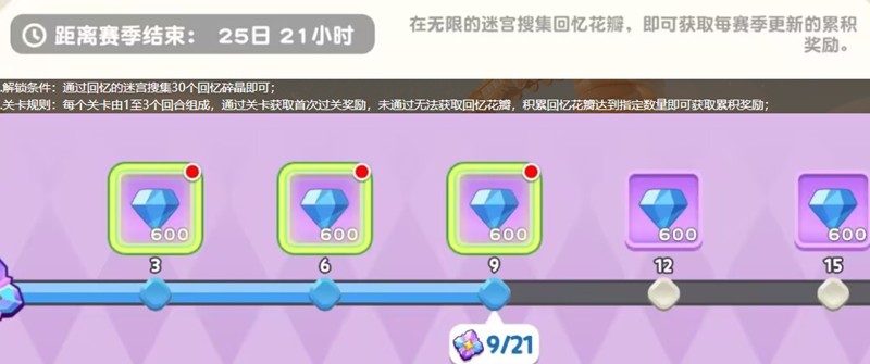 随着关卡推进,系统允许玩家携带的饼干队伍数量会逐渐增加。因此,在饼干人联盟中培养多支不同属性的主力队伍是非常有必要的,这样才能应对不同关卡的配置需求。成功通关后,玩家可以获得“回忆花瓣”,花瓣的总数量决定了赛季累积奖励的档位,同时也直接关系到段位的评定。当玩家收集完全部图谱的回忆花瓣后,系统会根据通关最后一关所用的时间进行最终排名,通关速度越快,排名就越靠前。每个赛季结算时,玩家会根据最终的段位获得专属的边框奖励,这个边框可以在下个赛季使用。