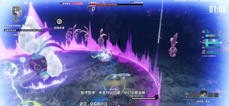副本流程需先通过清剿环境怪物积累调查进度,进度满后触发最终挑战——深海娜宝。该首领具备高度协同性机制,战斗全程围绕“音符标记”系统展开。