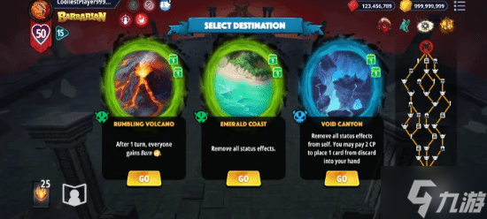 战役模式:这才是真正的重头戏。该模式借鉴了《杀戮尖塔》的肉鸽结构,目标是层层闯关,最终与“疯王”展开终极对决。你需要在一张分支路径的迷宫中前进,面对强敌、挑战Boss,并获取强大的升级——包括永久升级,让你在后续挑战中走得更远。