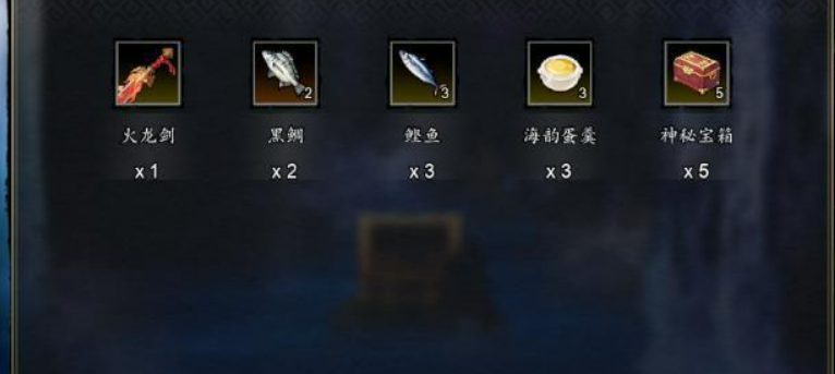 航行起始点设定为地图左上角岛屿,依序向下方各岛推进。玉壁岛共设三处宝箱:其一隐于椰子树后方,另两处位于向上延伸路径的高地处;其中一只箱内即为八珍之一——火龙剑。蟹岛同样配置三只宝箱:入门后沿主路前行,在钓鱼翁身后草丛中可发现第一只;第二只藏于左侧树木背面。值得注意的是,持续与钓鱼翁交互并以鱼类交换物品,可逐步解锁海外钓竿,并获取鲲骨钓竿相关线索;当界面出现左下方位游动的特殊鱼类时,点击垂钓操作,可在鱼腹中取得一把钥匙,用于开启左下角带锁宝箱,内含八珍之一葫芦。