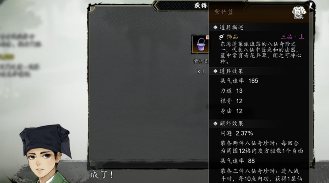 灵龟岛入口处将与步妹子展开对话;进入后请优先开启两只宝箱:一只位于中部树木后方,另一只在向左行进两步后可见,内装八珍之一紫竹篮。需注意该位置偶有大海龟停留阻挡,稍作等待即可通行。