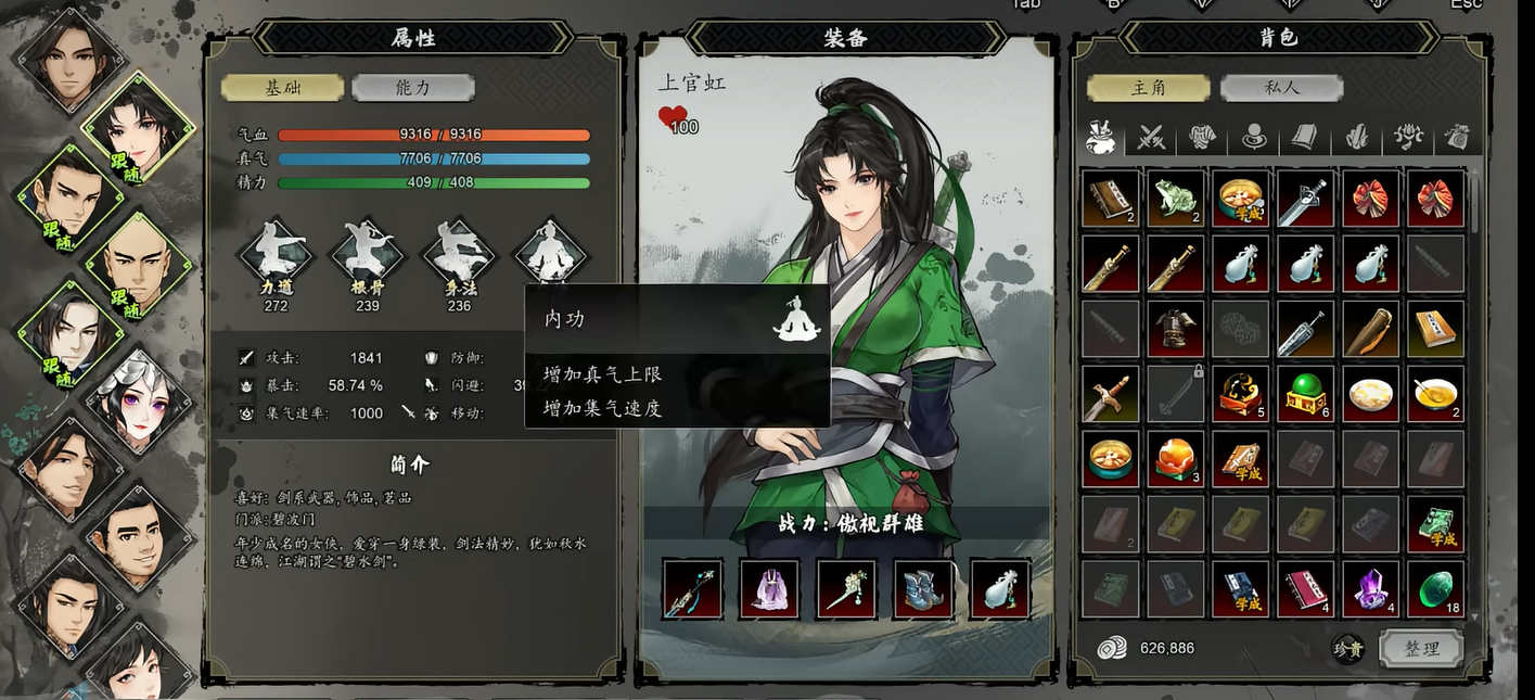 若在中期调整队伍时将上官虹移出,其回归机制并非即时生效。重新邀请需将好感度提升至60点方可触发召回选项。因此建议在资源有限的前期即确定培养策略,避免反复操作消耗时间成本。从实战表现看,上官虹全周期均有稳定输出:前期侧重治疗与增益辅助;觉醒后显著强化闪避协同能力,可大幅提升全队回避率,在高难度关卡中具备不可替代性。