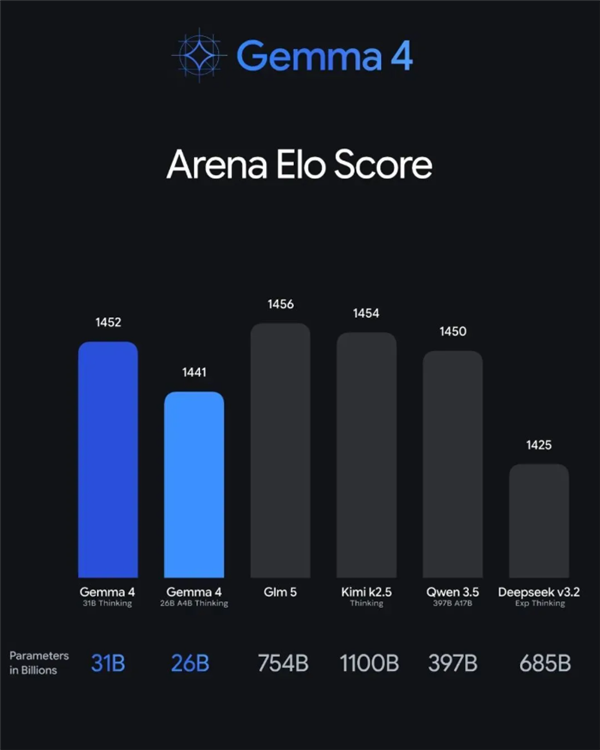 一口气推出四款不同规格模型,覆盖从手机、边缘设备到工作站、服务器的全场景部署,在参数效率上表现亮眼,31B版本更是跻身Arena AI开源排行榜第三。