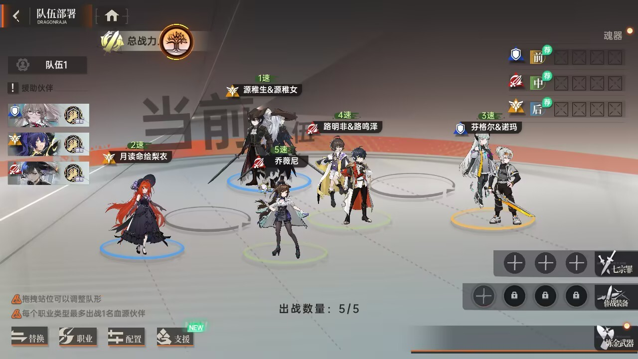 本套阵容使用【芬格尔&诺玛】作为主要承伤角色,可以保护核心输出角色【路明非&路鸣泽】,使其能够拥有稳定输出环境,同时全队护盾减伤配合治疗效果,可以使战斗进入长盘作战,使核心输出角色有更多的时间堆叠自身增益效果,安全启动。