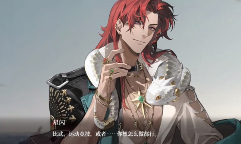 星闪的背景故事与海洋紧密相连,他是一位崇尚自由、不拘礼法的红发船长。他的衣着随性却气场十足,深红色的长发是其标志性特征。在夜幕之下的世界观中,星闪常年航行于广阔海域,熟悉各方海上势力与未知岛屿,他的过去似乎隐藏着许多秘密,等待玩家在好感度提升和专属剧情中逐步揭开。