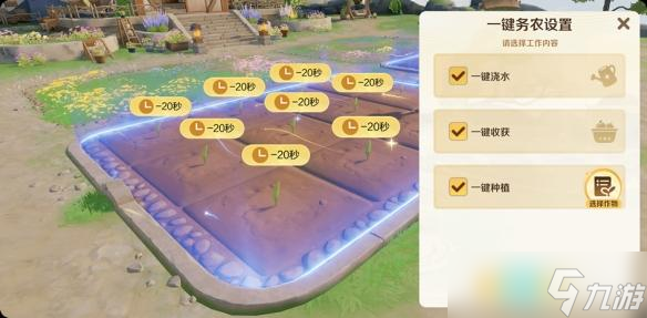 随着农场等级的提升,农场灵像会开放一键务农功能,提供方便的一键浇水、一键收获、一键种植等功能。请努力提升农场等级,解锁更多的便捷功能吧!
