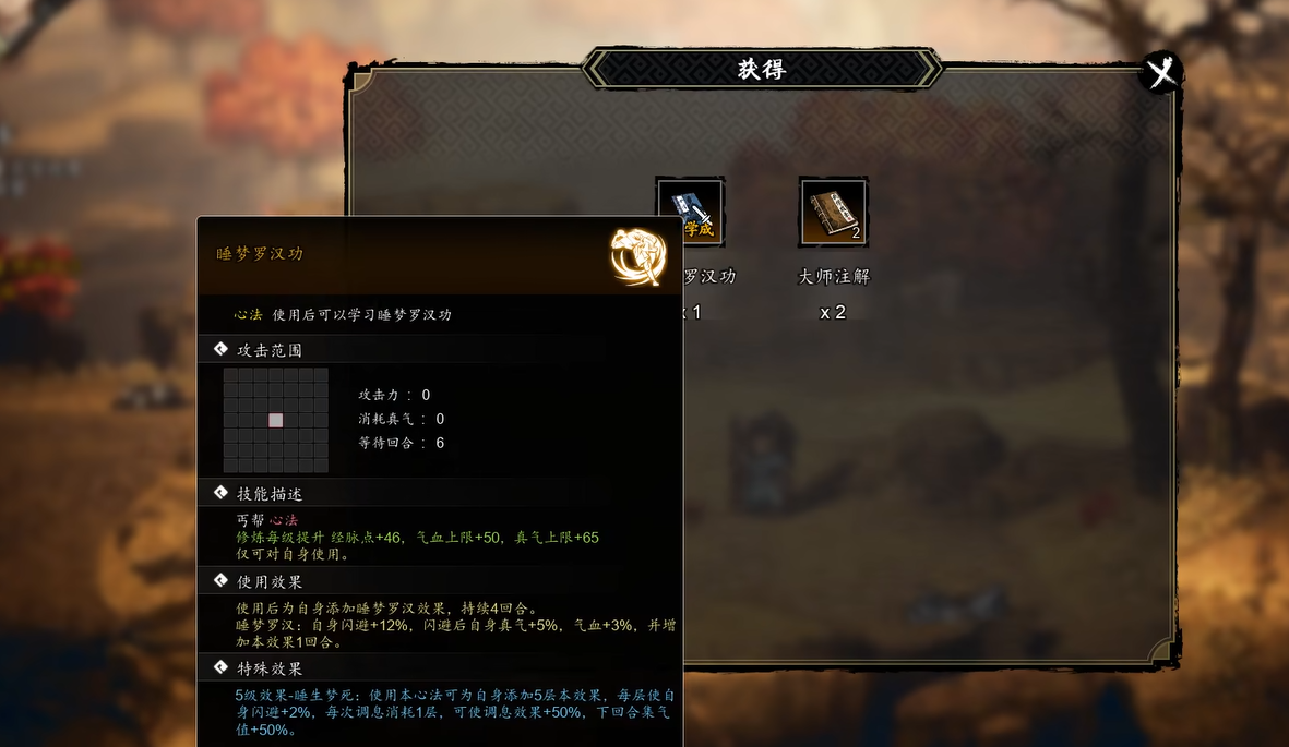 【同游西凉】完成后,除获得【亢龙有悔】外,李元兴同步习得【打狗棍法】,宇文逸可继承掌握这两项技能;同时,【睡梦罗汉功秘籍】也将一并入手,供燕未还与李元兴共同修习。该支线实质构成前期战力跃升的重要节点,兼具功能性与叙事性,建议优先处理。
