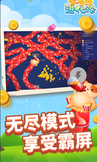 本作在经典贪吃蛇框架上注入进化机制。玩家通过滑动屏幕控制虫形单位移动方向,需规避碰撞并主动吞食小型对手。当多只同阵营虫体汇聚,可融合为体型更大、行动更稳的复合形态;双击屏幕触发瞬时爆发技能,大幅提升单次吞噬效率与对抗胜率。金币作为核心资源用于解锁形态分支与能力强化,学习曲线平滑,策略深度随局内决策积累自然提升。