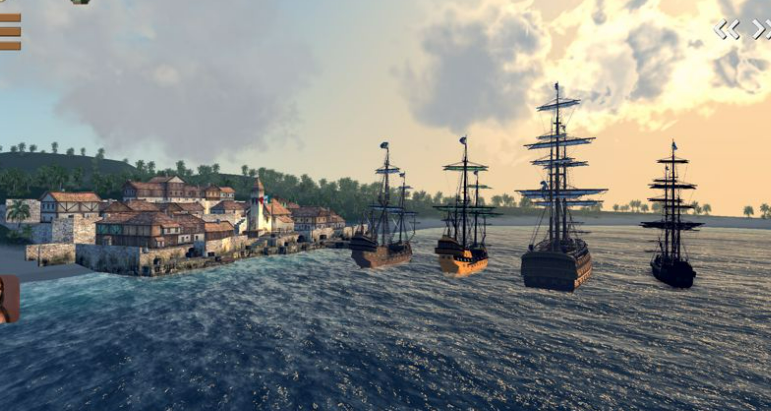 专注动作反馈的硬核海战体验。战斗采用即时演算机制,玩家需手动瞄准敌舰薄弱部位,预判风向与船速调整炮击角度;登船后进入快节奏近身对抗,招式连段与闪避时机直接影响胜负。占领港口后可建设造船厂、火药库与瞭望塔,逐步解锁更高级战舰与特种弹药。场景设计高度还原加勒比地理特征,昼夜交替与天气变化影响视野与航行稳定性,增强沉浸真实感。