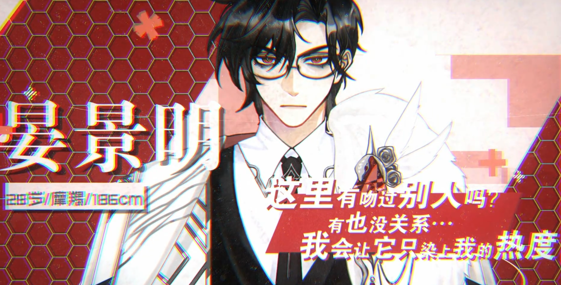 角色性格层面,晏景明精准锚定“霸总”类型受众偏好:行事果决、目标感极强、决策不容置疑,展现出典型的摩羯座特质。外形设计上采用经典精英范式——定制剪裁的三件套西装搭配哑光质感白色呢子大衣,辅以简约黑框眼镜,整体风格克制而富有压迫感,高度契合目标用户对禁欲系男主的审美期待。