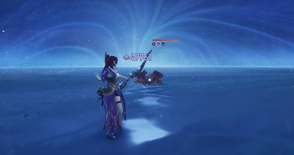 伽罗具备弓箭形态切换机制:常态为短弓,可连续普攻输出;触发完美闪避或释放二技能后,下一次普攻将被强化为“渡灵箭”,并自动切换至长弓状态。长弓状态下,消耗渡灵箭可发动高伤单体射击,且连射过程中攻速持续提升;暴击时额外生成“追魔箭”进行追踪打击。“静默之箭”为范围击退技能,命中后返还2支渡灵箭;“纯净之域”展开圆形控制领域,对范围内敌人造成击飞效果,并提升自身暴击率;终极技“神箭”凝聚高额物理伤害,具备显著爆发特性。