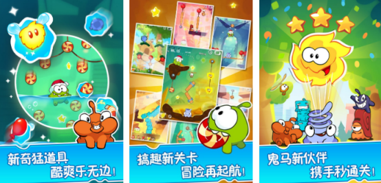 以重力、惯性、碰撞等真实物理规律为解谜基础,呈现200余关精心编排的益智挑战。每个关卡中,糖果被多段绳索悬吊于不同空间结构内,玩家需切割特定绳结,引导糖果绕过尖刺、火焰、移动平台等障碍,最终精准落入小怪物口中。主题场景覆盖森林、沙漠、地下城等多元环境。