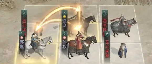 首推「孙权拼点联动队」:核心武将为孙权、徐庶、郭嘉。该体系以拼点机制为驱动轴心,通过高频拼点触发技能联动,实现技能循环提速与爆发节奏前置。站位上,孙权固定置于前排中央主将位,徐庶与郭嘉需严格部署于其追击格范围内,确保拼点响应链完整。郭嘉必带战法十胜十败,保障智力比拼成功率,每胜一次即叠加1层胜机;叠满6层后消耗,可使下一次天赋或主动技能造成额外加成伤害。孙权装配制御之道,强化先手统御施加能力,并提升所有比拼类效果的触发概率。徐庶则承担双维压制职能,在武力与智力双重比拼中持续施压,形成多段连锁控制,突破追击格限制实现短时高频输出。