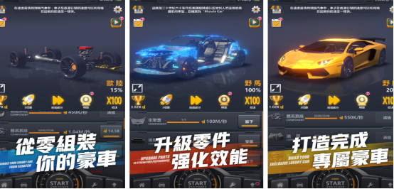 本作融合模拟经营与竞速养成双核心玩法。玩家以车队管理者身份切入,统筹车手招募、车库扩建、资金调配及赛事规划。车辆成长体系采用经典合成机制:将两辆同阶跑车合并,即可升阶解锁更高性能载具。赛道表现不仅取决于车辆参数,更与车手技能、改装等级及战术部署深度绑定,策略维度丰富。
