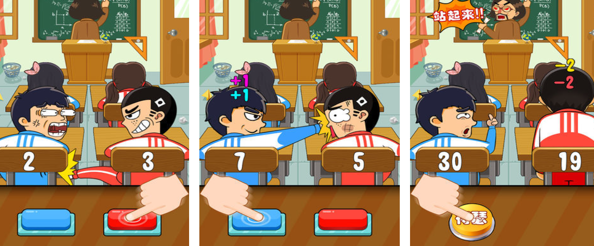 游戏灵感源自课堂真实互动场景,将传统“打手板”玩法数字化重构。两名玩家分饰攻守角色:进攻方需在限定时机内高频点击屏幕模拟突袭,防守方则须精准预判并及时收回手指完成闪避。老师转身的倒计时机制强化沉浸感,每一次成功击中或灵巧躲避都伴随即时反馈,有效提升手眼协调与瞬时判断能力。轻松氛围中自然融入规则意识与交互礼仪。