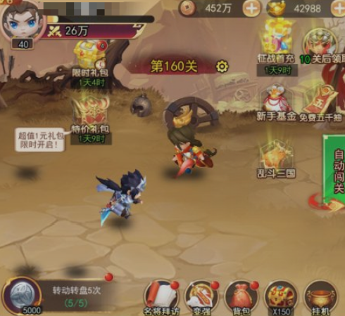 新手进入游戏后,首先进入的是“征战”与“转盘”双主线。其中,“转盘”是前期资源积累的核心入口。每次转动需消耗金币与银币,二者均可通过完成新手引导任务及日常目标稳定获得。该系统采用概率式随机机制,本质为高自由度的资源抽取玩法——不仅可获得各类品质的三国武将,还涵盖兵器、战旗、天书等关键养成材料。特别提示:当转盘触发随机事件时,若判定为战斗类事件,将自动激活一名全新武将参与助战,该机制不占用出战位,属额外战力增益。