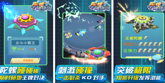 融合动作、冒险与策略养成多维玩法的综合型陀螺IP衍生作。完整保留陀螺旋转持续时间、结构耐久度、离心力反馈等拟真物理参数。除实时PVP外,设有主线剧情关卡、资源采集副本与基地建设模块,玩家需统筹材料分配,定向升级陀螺部件,解锁进阶技能树,实现从单一对抗到全局策略的成长闭环。