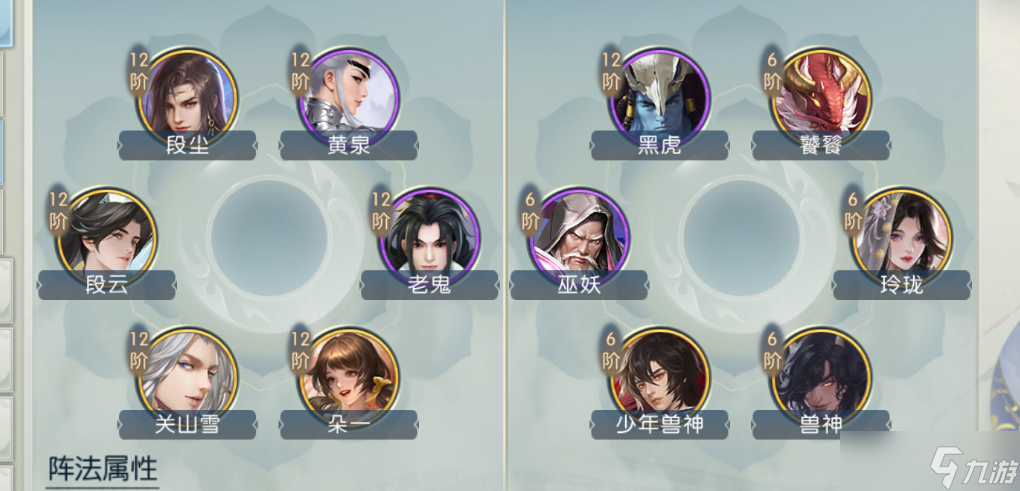 这一套,适合认为全面才是游戏王道的玩家,目前比较适合大多数人的阵法,攻击防御气血暴伤加成与暴伤减免都不错,万能版本,适合输出,也适合辅助。