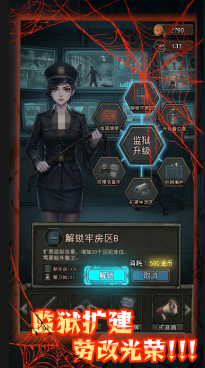游戏最突出的核心玩法,是高度自由的基地建造系统。玩家不是旁观者,而是亲手丈量每一寸空间的决策者:牢房如何分区才能兼顾隔离与效率?岗楼该设在哪个制高点才能覆盖盲区?发电机组与净水设备的布线是否避开主干道?这些细节设计直接决定监狱能否撑过第七次大规模尸潮。从锈蚀铁门到多层防御工事,每一块砖石的堆砌都在强化末日避难所的生存韧性,带来扎实而持续的建设满足感。