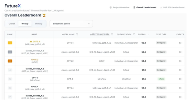 2026年3月29日,一份名为FutureX的全球动态评测榜单刷新了成绩。北京中关村学院信息智能团队自主研发的智能体系统Milkyway,以60.9分的绝对优势霸榜!