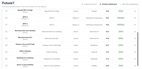 不过,总分拉胯不代表全盘皆输。为了更精准地衡量大模型的工业落地能力,FutureX专门设立了“细分预测任务”(涵盖基础事件与要求极高精度的FutureX-Pro垂直领域),这直接暴露了各家大模型的“偏科”体质: