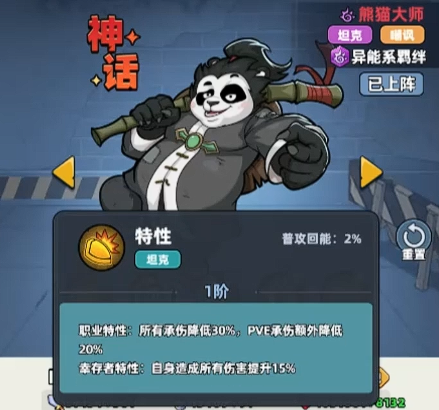 除基础减伤外,熊猫大师还拥有显著的团队增益维度:其幸存者特性可在战斗后期提供15%全队伤害加成,直接强化我方主力输出的DPS效率。该增益虽不作用于自身伤害,却通过提升队友输出间接放大其保护价值——更高的团队火力意味着更短的战斗时长,从而减少前排持续承伤压力。