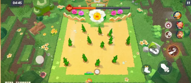 BOSS具备四项核心技能机制:其一为“荆棘召唤”,地面随机凸起尖刺,接触即受伤害,需根据地面震动预判规避;其二为“叶片挥砍”,向前方扇形区域发动近战攻击,可通过侧移或绕背轻松闪避;其三为“狂风制造”,生成大范围击退气流,导致角色位移失控,被吹飞后须立即重置站位;其四为“狂暴射击”,进入狂暴状态后高频发射多段种子弹幕,正前方区域伤害密度极高,输出时应始终保持侧翼或斜角位置。