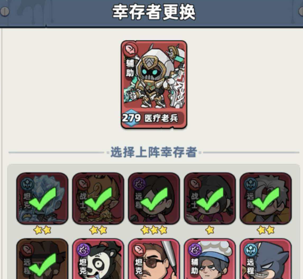 角色切换流程清晰高效:进入游戏主界面后,点击底部【幸存者】入口,再选择右下角【布阵】按钮,即可查看当前出战编队。点击任一已上阵角色头像,系统将跳转至替换界面;从下方待选幸存者列表中选定目标角色,即可完成即时更换。关键一步在于——务必勾选【同步更换技能书】选项。该功能可自动继承原角色全部主动技能与被动技能配置,免去重新搭配技能组合的时间与资源消耗,显著提升培养效率与实战响应速度。