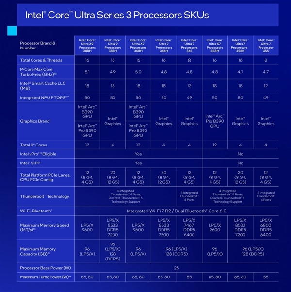 先说符合预期的,能效提升大、核显性能强,对应的处理器型号有5款,包括4款Ultra X和1款Ultra 5,