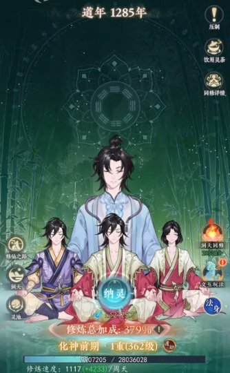 为提升成长效率,玩家需在入门阶段即建立长期资源规划。初始阶段以高频点击纳灵为核心,快速累积基础修为;迈入中期后,日常副本全面开放,其中“游历寻宝”成为新手过渡关键路径——该玩法全程免操作,支持离线收益,可稳定产出灵石、功法残卷及炼丹辅材;待角色晋升至灵动期,灵池系统正式解锁,允许玩家投入丹方与药材进行定向炼化,产出高品质丹药,显著加快后续境界突破速度。