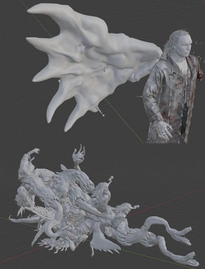 最终形态:则是一个由多个嵌合头颅和蛇形肢体构成的恐怖怪物,在气质上与角色设定更为贴合。