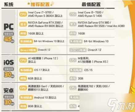 iOS设备:推荐运行内存不低于6GB,适配游戏运行需求;存储空间同样建议预留至少30GB可用空间,避免因空间不足导致安装或更新失败。